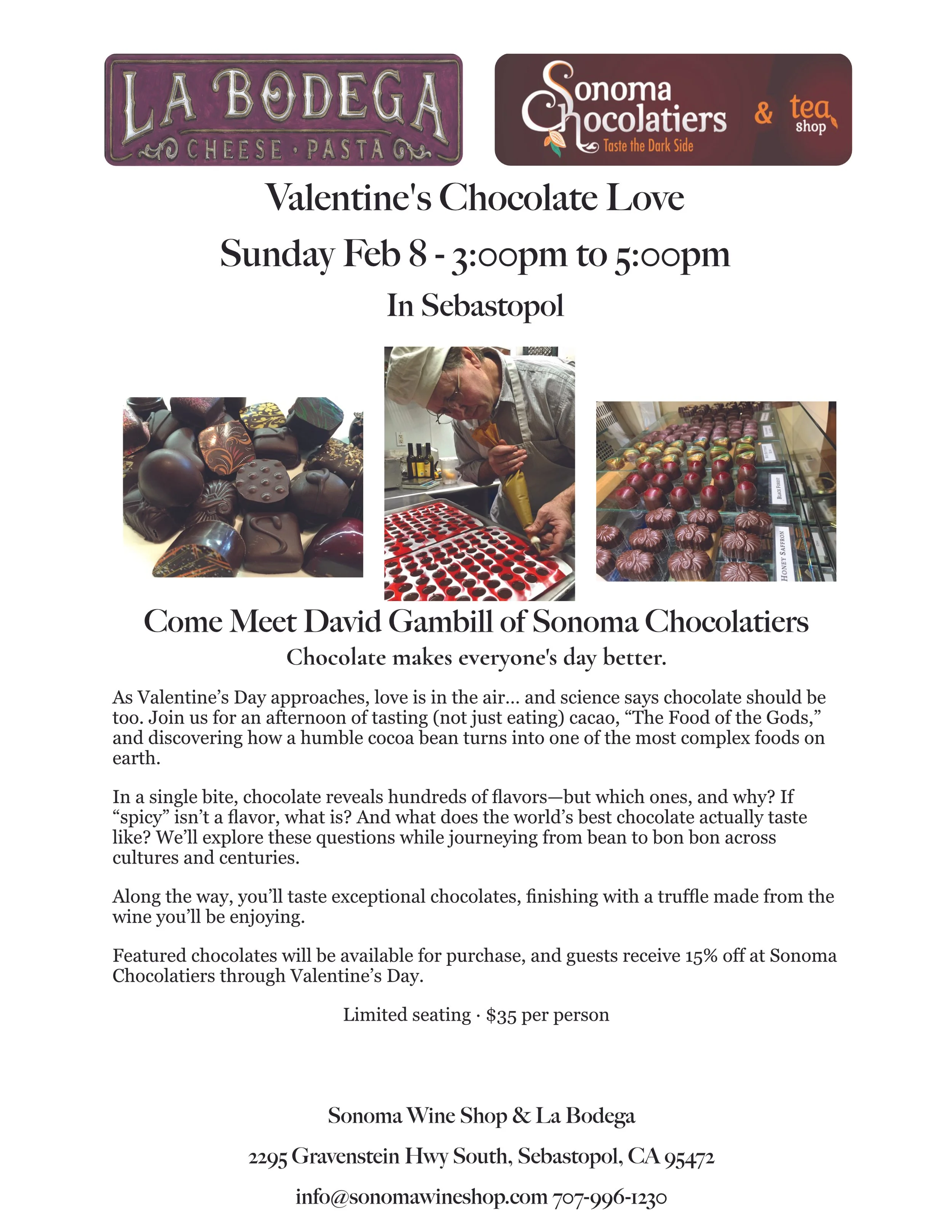 If you wish to stay for dinner at La Bodega, please reserve your table and we are very happy to have you!